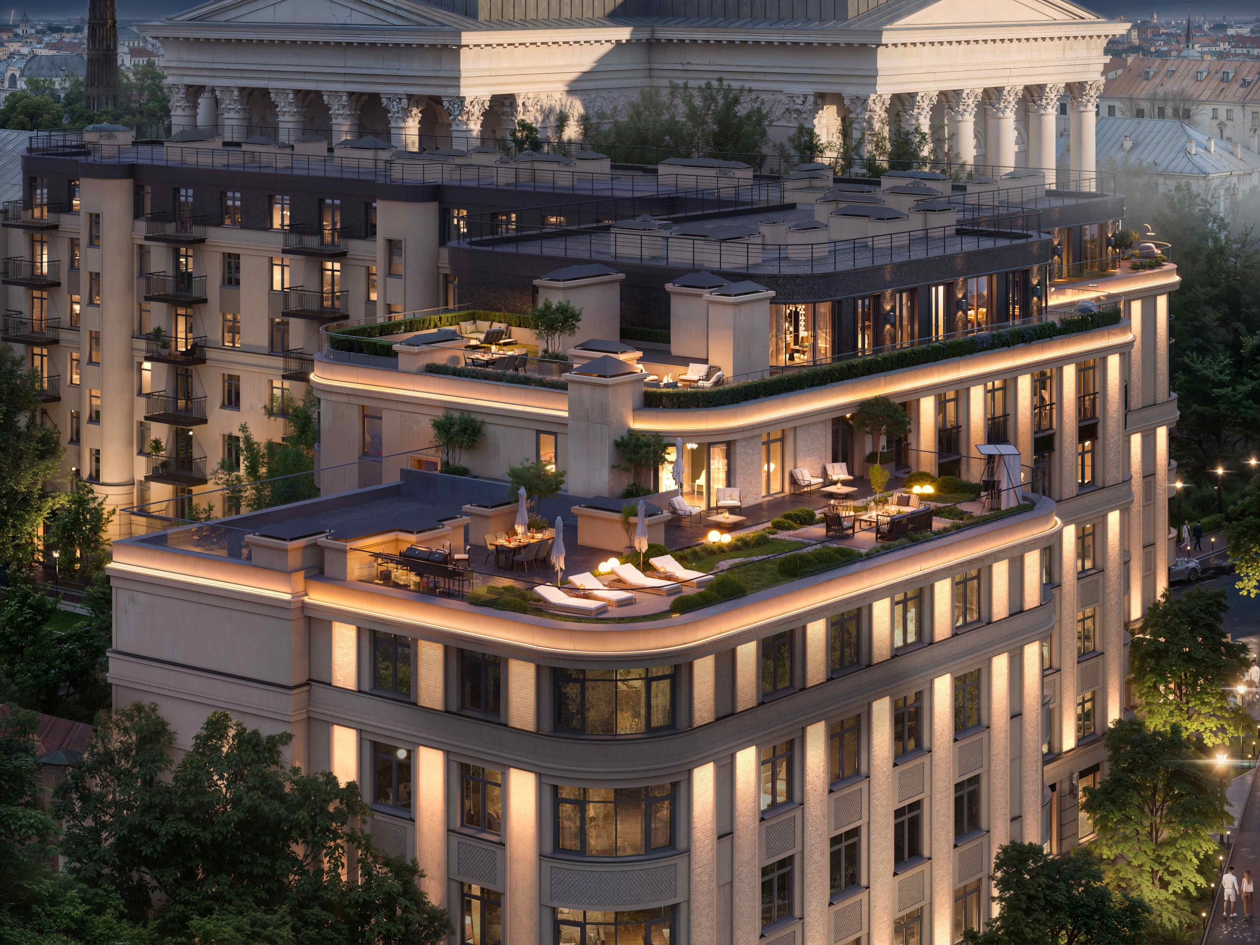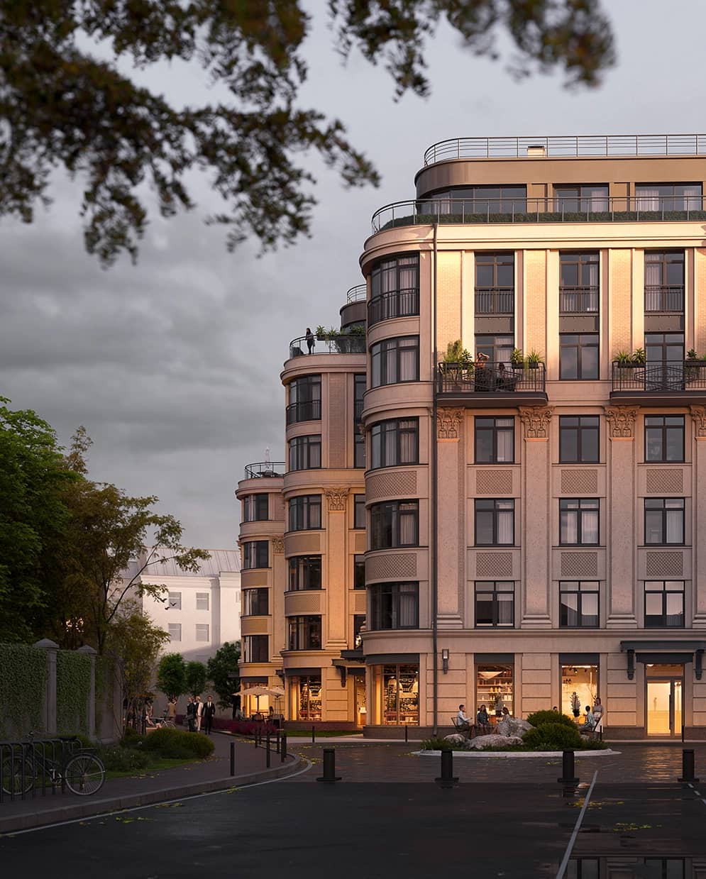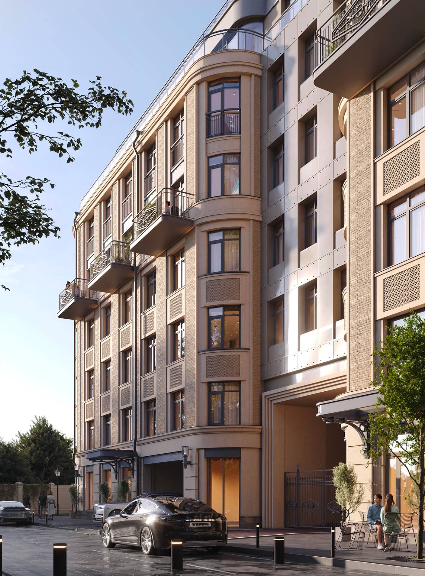 В его облике сплетаются мотивы эпохи модерна и благородные штрихи ар‑деко; строгие пропорции фасадов и благородная фактура материалов рождают ощущение естественной связи времён.